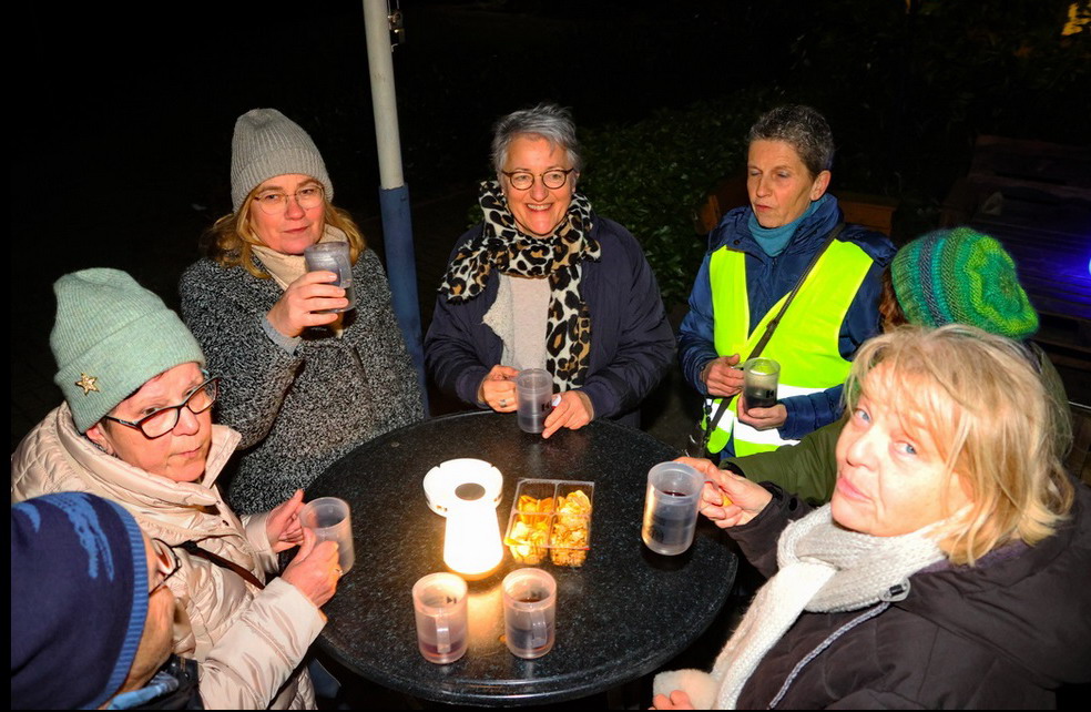 Auch in den Jahreszeiten, in denen wetterbedingt weniger Fahrrad gefahren wird, bieten die Organisatoren bei den Radwanderfreunden ihren Vereinsmitgliedern kleine Events an. Nach erfolgreichem Start im vergangenen Jahr hat sich die Abendwanderung mit Glühweineinkehr im Januar wohl zu einer Traditionsveranstaltung entwickelt! Gleich über 45 begeisterte „Radwanderfreunde“ wanderten mit Tourenleitung Conny Schöpker in der vergangenen Woche um 18 Uhr am bekannten Treffpunkt für die Touren des Vereins, dem Vorplatz des Haupteinganges vor dem Bürgersaal, los um nach einer knappen Wander-Stunde die einladend vorbereitete Lokalität zu erreichen. Erstmalig war das Vereinsheim der Kleingartenanlage Telgengrund Ziel der Einkehr. Hier hatten fleißige Helferinnen und Helfer alles sehr einladend vorbereitet und das „Glühweinmobil“ wartete draußen auf die Wandergruppe. Der ein oder andere war direkt zum Telgengrund gekommen, sodass fast 70 Mitglieder hier Zeit fanden, den Abend bei Glühwein, Punsch oder Kaltgetränk gemütlich ausklingen zu lassen. Mit Spannung wird wieder das neue Programm für die kommende Saison erwartet!