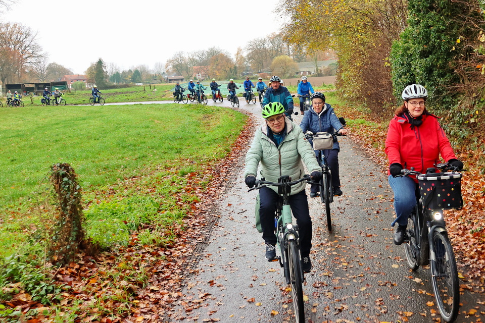 Aufgeteilt in zwei Gruppen, geführt von den erfahrenen Tourenleitern Mecky Krühler und Paul Eckert, führte die etwa 13 Kilometer lange Strecke durch das herbstlich gefärbte Emsdettener Venn und durch das idyllische Ahlintel. Bei angenehmen Temperaturen und unter strahlendem Himmel genossen die Teilnehmenden die Natur und das gemeinsame Radeln.