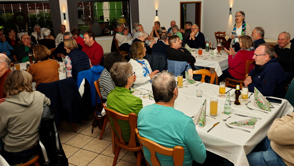 Traditionell findet im November das Grünkohl-Essen der Radwanderfreunde statt. So trafen sich am vergangenen Sonntag ca. 30 Radlerinnen und Radler um mit dem Tourenleiter August Berning eine Radtour zu unternehmen. Er führte die Radlgruppe Richtung Hembergen , um dann gegen 12 Uhr die Gaststätte Pötter zu erreichen. Die erste Vorsitzende Ulli Hüls-Klespe konnte dort dann 80 Vereinsmitglieder begrüßen und nutzte die Situation, um auf die nächsten Veranstaltungen aufmerksam zu machen. So findet am 9.Januar 2026 die Jahreshauptversammlung in der Gaststätte Pötter statt, bei der auch wieder Vorstandswahlen anstehen. Am 27.Januar 2026 ist zur Abendwanderung mit anschließender Glühweineinkehr im Kleingarten Telgengrund eingeladen. Außerdem finden am 11. Januar 2026 und am 22. Februar 2026 zwei Wanderungen mit August Berning statt. Ein großes Danke ging an die Tourenleiterinnen und Tourenleiter für die tollen Angebote in diesem Jahr, ob mit Rad oder mit Wanderschuhen. Beim leckeren Grünkohleintopf und Herrencreme gab es gute Gespräche und einen regen Austausch untereinander.