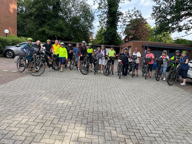 Der Verkehrsverein bietet eine Collektion auf Komoot an mit wunderschönen Radtouren im Münsterland. Hier haben sich die Tourenleitungen Andrea Vismann und Ulli Hüls-Klespe am vergangenen Sonntag Bagno- und Max-Clemenskanalrunde ausgesucht und gleich mit 26 begeisterten Radfahrenden mit sehr gut bewertet. Bei sonnigem Wetter ging es um 11 Uhr ab Platz vor dem Bürgersaal los um die knapp 50 km Runde zu bewältigen. Schöne Radwege in Natur und Wald, wenig Hauptstrassen und eine große Pause am Bagno erfreuten alle Radwanderfreunde. Zum Schluss der Tour machten noch 13 Mitglieder Einkehr im schönen Biergarten in Ahlintel und genossen das leckere Kaltgetränk!