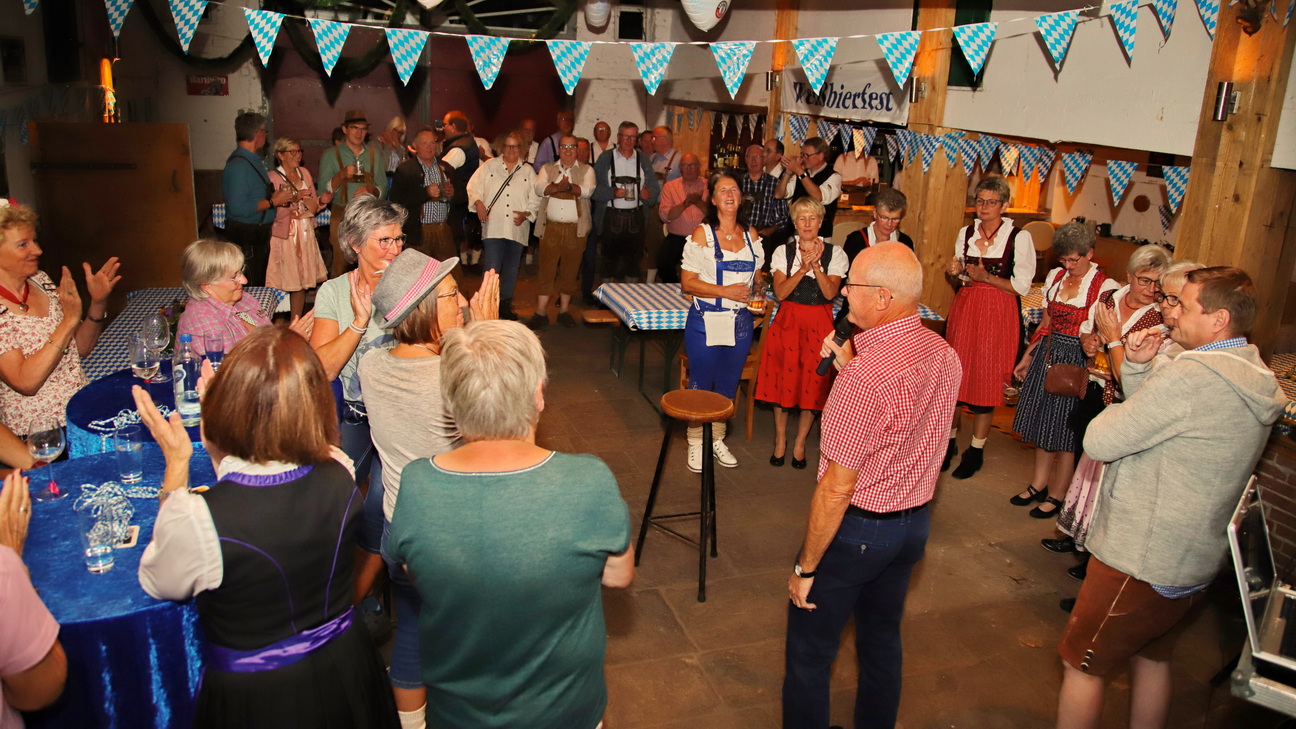Am 02. Okt. feierten die Radwanderfreunde zum 2. Mal auf dem Hof Berning in Westum das Oktoberfest für die Vereinsmitglieder. Thomas Borgmann als Organisator des Festes und der erste Vorsitzende Karl-August Kortmöller begrüßten die knapp 50 Gäste und luden zunächst zum leckeren Bayrischem Essen ein. Anschließend feierten Jung und Alt gemeinsam in dem original bayrisch geschmückten „Festsaal“ bei flotter Musik und natürlich auch mit Blasmusik. Alle Gäste erschienen in zünftiger Bayerntracht, genossen das bayrische Bier, das gute Miteinander, feierten und tanzten bis spät in die Nacht.