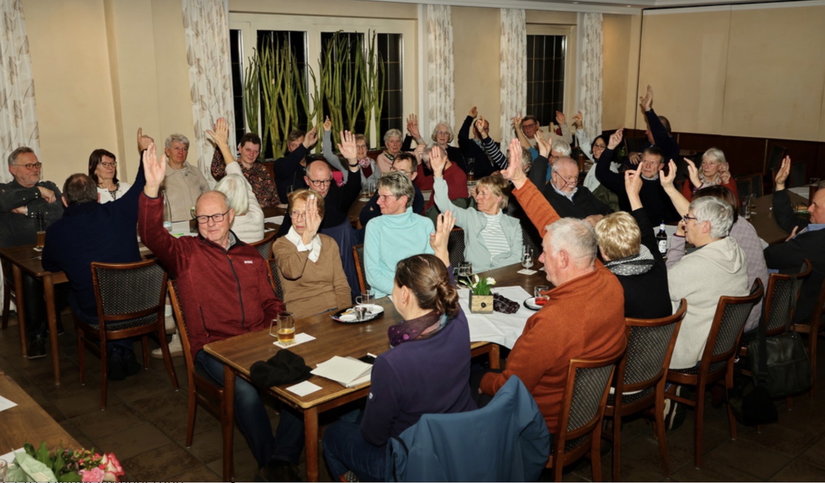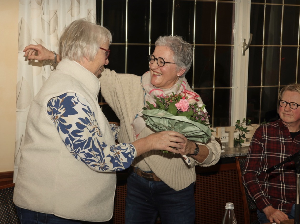 „Am 09.01.2026 fand unsere diesjährige Jahreshauptversammlung in der Gaststätte Mölljans statt. Trotz des schlechten Wetters und eines kurzfristigen Lokalwechsels war die Versammlung mit 45 Radwanderfreunden gut besucht. Neben der Vorstellung unseres neuen Jahresprogramms, der Entlastung des Vorstands und der Verabschiedung unserer langjährigen Schriftführerin Steffi Wolters – sie übte dieses Amt 15 Jahre lang aus – standen Neuwahlen an. Ralf Schulz wurde für weitere drei Jahre einstimmig als Kassenführer wiedergewählt. Roswitha Demming tritt in die Fußstapfen von Steffi Wolters und wurde einstimmig als neue Schriftführerin gewählt. Ebenso konnten wir auch in diesem Jahr einige Mitglieder zu ihrem 25-jährigen Jubiläum beglückwünschen.“